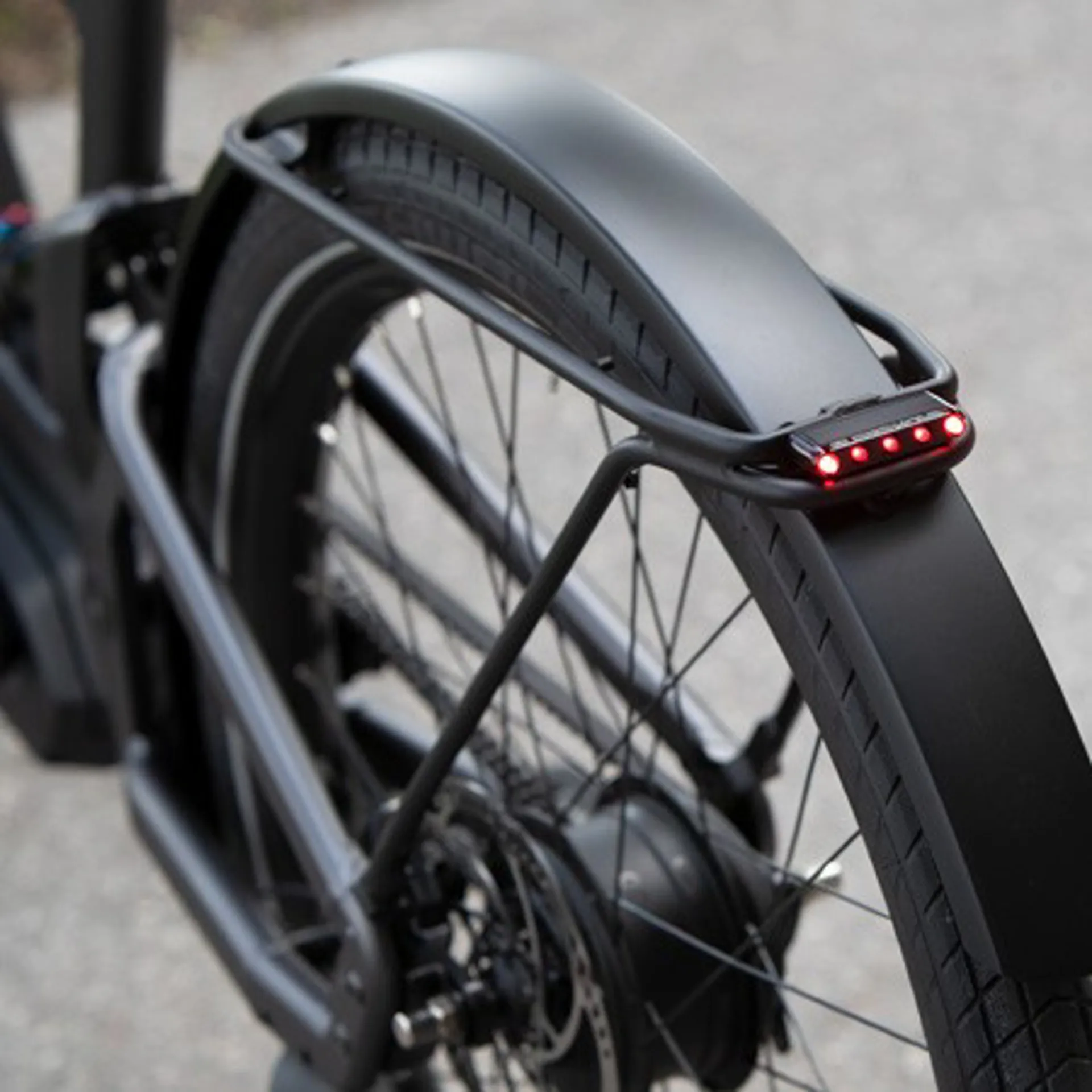 The minimalist pannier rack is ideal for fixing panniers weighing up to 5 kg each. The rear and brake lights are unobtrusively integrated into it. The “Form follows function” design principle has been exceptionally well executed with the pannier rack.